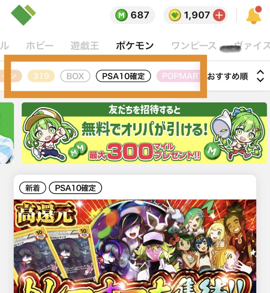 - 1ptで回せるコスパ抜群のオリパが豊富