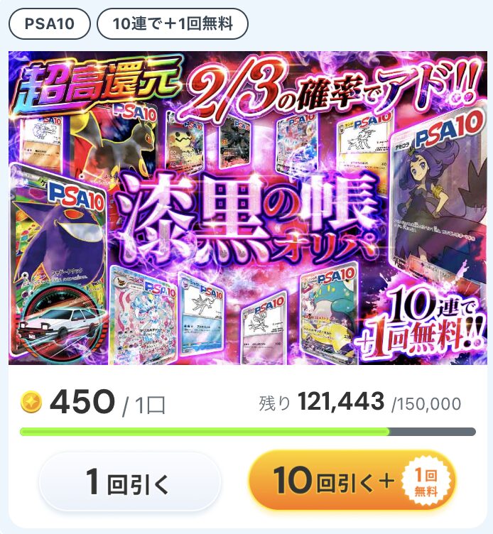 オリパを買うなら、残りが少ないオリパガチャを回すのは避け、できるだけ新しく販売されたものを選ぶのが賢い選択です。