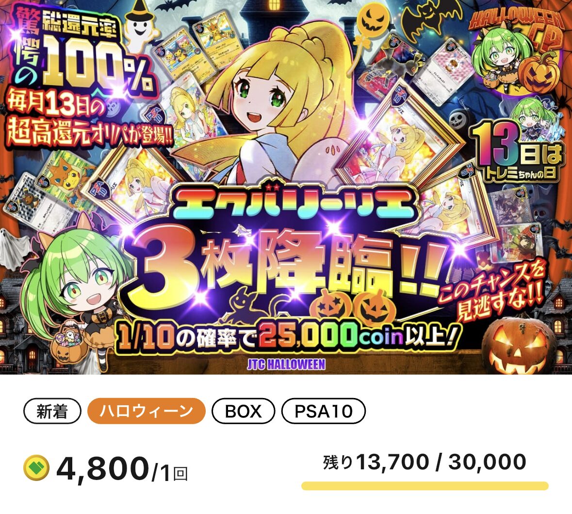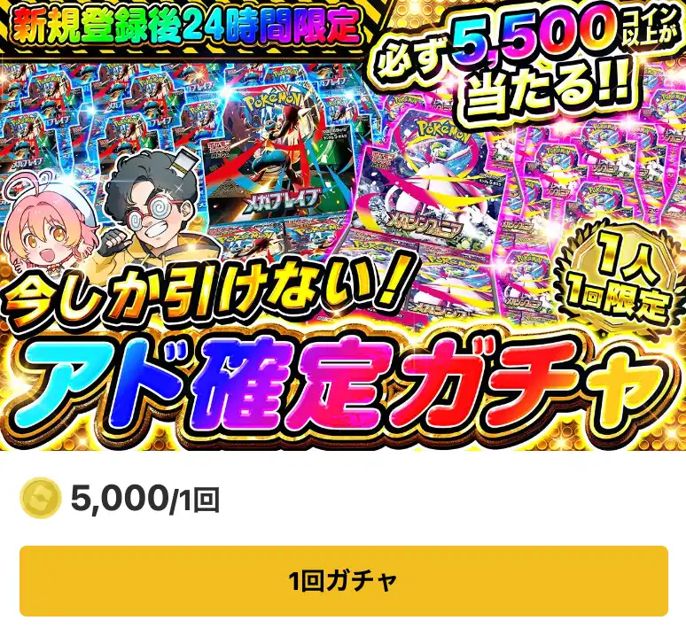 ![]() オリパワン | ・1/30の確率など、当たり確率が他のオリパよりも現実的 ・公式ライン追加で初回購入時に使える最大90%OFFクーポンがもらえる ・新規登録ユーザー限定のアド確定オリパが豊富 |