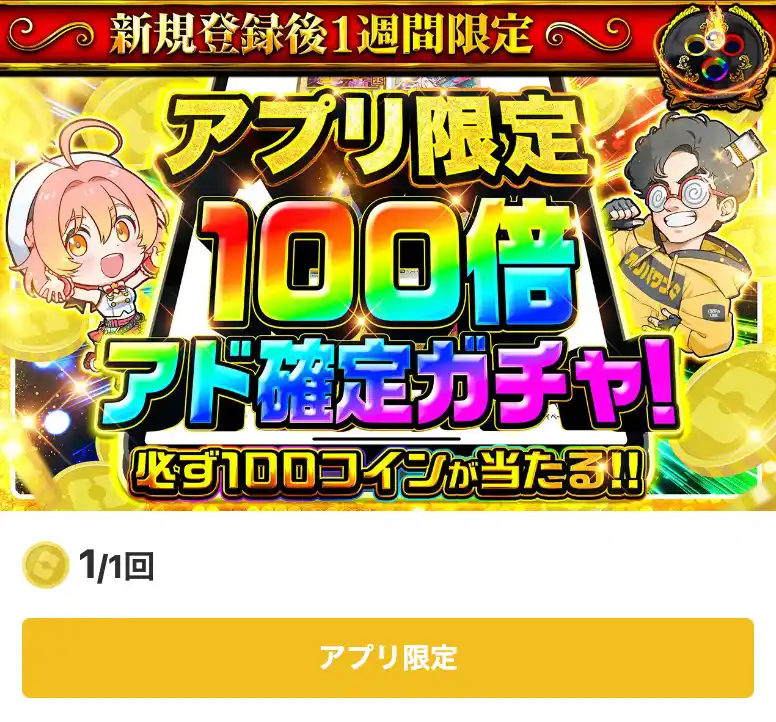 ![]() clove | ・エクストラ賞付きのガチャがある ・SMS認証で500ptが無料でもらえる ・無料ガチャで最低200ptがもらえる |